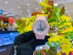- Vỏ và dây đeo được làm từ nhựa cao cấp, khoác lên mình tone hồng pastel chủ đạo.