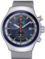 Citizen CA7011‑83L là đồng hồ chronograph Eco‑Drive calibre B642 (tích hợp sạc ánh sáng, dự trữ ~7 tháng). Mặt số xanh navy với hai mặt phụ, vạch và kim phủ dạ quang, cùng viền tachymeter. Vỏ 43,5 mm – dày 11,8 mm – thép không gỉ, kính khoáng, dây lưới thép quai mesh. Chống nước 100 m, có lịch ngày. Phong cách vintage thể thao, linh hoạt từ bơi nhẹ đến dùng hàng ngày.