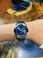 Viền hai mảnh có đường viền và lớp tráng gương, cùng vỏ chắc chắn. Bộ kim cọc dày và to bản đánh dấu thời gian một cách kiêu hãnh