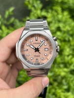 Sự kết hợp giữa khung bezel bên trong xoay đôi, hoa văn nguyên bản của Series Eight trên mặt số và dây kim loại thuôn nhọn mang lại cho đồng hồ Citizen Series 8 890 Mechanical NB6066-51W vẻ ngoài thể thao cũng như ấn tượng thành thị và sang trọng.