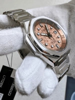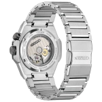 Sự kết hợp giữa khung bezel bên trong xoay đôi, hoa văn nguyên bản của Series Eight trên mặt số và dây kim loại thuôn nhọn mang lại cho đồng hồ Citizen Series 8 890 Mechanical NB6066-51W vẻ ngoài thể thao cũng như ấn tượng thành thị và sang trọng.