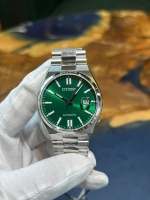 Citizen NJ00150-81X sở hữu mặt số xanh lá cây – gam màu đang được ưa chuộng trong giới thời trang cao cấp. Lớp hoàn thiện dạng sunburst giúp ánh sáng phản chiếu tinh tế, tạo chiều sâu và sự chuyển động màu sắc theo từng góc nhìn.