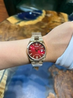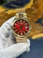 Mặt số của Tsuyosa có màu đỏ sunburst bắt mắt, với cọc số mạ kim loại sáng bóng, kim giờ và phút phủ dạ quang, giúp dễ dàng xem giờ trong mọi điều kiện ánh sáng. Đồng hồ mang lại cảm giác sang trọng và hiện đại, đặc biệt phù hợp cho những ai yêu thích phong cách thể thao-lịch lãm.