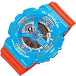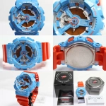 Sự kết hợp giữa G-SHOCK GA-110 thiết kế màu sắc ấn tượng màu xanh và cam trẻ trung, làm cho vỏ và dây đeo thể hiện cảm giác sống động mạnh mẽ, đường kính GA-110NC 51,2mm Con trỏ đẹp trai được trang bị thiết kế hai mặt kỹ thuật số. Các bộ phận kim loại được xếp chồng lên nhau để tạo ra một lớp ba chiều. / chống nước 200 mét (G-SHOCK), giờ thế giới, bảng mã, đếm ngược, 5 nhóm báo thức, v.v.