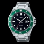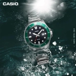 Casio MDV-107D-3AVDF là mẫu đồng hồ lặn nam mạnh mẽ, nổi bật với mặt số xanh lá đặc trưng, kim và cọc số phủ dạ quang siêu sáng. Với khả năng chống nước lên tới 200 mét, thiết kế thép không gỉ nguyên khối và viền bezel xoay đơn hướng, đây là lựa chọn lý tưởng cho người yêu thể thao và phong cách mạnh mẽ. Bộ máy quartz Nhật bền bỉ, mặt kính khoáng chịu lực và lịch ngày tiện lợi mang lại trải nghiệm đeo ổn định, chính xác. Mức giá hợp lý dưới 2.5 triệu đồng khiến MDV-107D trở thành “huyền thoại giá rẻ” được săn lùng trong phân khúc đồng hồ lặn phổ thông.