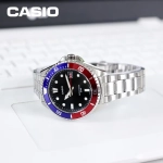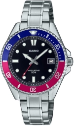 Đồng hồ Casio nam MDV-10 khác những mẫu đồng hồ Casio khác bởi có viền màu và KHÔNG có logo Marlin. Sự hiện diện của rất màu màu sắc ở phần khung bezel tạo điểm nhấn và sự khác biệt cho chiếc đồng hồ.