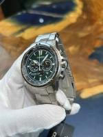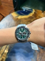 Mặt số xanh lá nổi bật, kim giờ-phút màu bạc và vạch chỉ giờ dễ đọc, tích hợp dạ quang tiện ích trong bóng tối