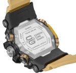 Đồng hồ G-SHOCK MUDMASTER đưa bạn đến với những địa hình “khó nhằn” nhất với thiết kế riêng biệt phù hợp với những môi trường khắc nghiệt nhất trên đất liền. Chiếc đồng hồ chống va đập này được thiết kế để chống bùn và cát trong những chuyến phiêu lưu của bạn, đồng thời sử dụng công nghệ thiết kế mới nhất của chúng tôi để mang đến hình dáng nhỏ hơn và vừa vặn hơn bao giờ hết. Thiết kế nhỏ gọn này có được là nhờ đường gờ bằng cacbon rèn cứng, cấu trúc vỏ bảo vệ lõi cacbon và các nút chống bùn kết hợp với ống thép không gỉ và bộ đệm silicon. Sợi cacbon dạng bột mịn được nhào thành nhựa, sau đó được ép nhiệt để tạo ra phần đường gờ công phu hơn và cứng cáp hơn trước. Các phép đo cảm biến bộ ba giúp bạn luôn được cập nhật các chỉ số về hướng, độ cao, áp suất khí quyển và nhiệt độ. Các vạch chỉ giờ bằng chữ số lớn, kim hình mũi tên dày hơn, đèn LED kép và mặt kính saphia giúp bạn dễ nhìn hơn. Dây đeo được cấu tạo theo phong cách của tay cầm cao su chống trượt chịu lực và các nút được tạo vân để dễ dàng thao tác. Đồng hồ MUDMASTER mang phong cách thiết kế mạnh mẽ, có độ bền cao và nhiều tính năng hữu ích.