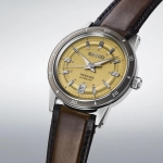 Phong cách retro với mặt số vàng ánh kim hiếm gặp.