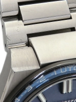 Mặt số: Màu xanh navy ánh sunburst, phối cùng các chi tiết màu bạc nổi bật. Kim và cọc số được phủ LumiBrite phát sáng trong bóng tối.