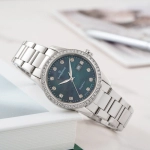 - Thiết kế thanh lịch, tinh tế: Mặt số khảm trai lấp lánh kết hợp với bộ kim thanh thoát tạo nên một tổng thể hài hòa, sang trọng. Dây đeo kim loại vừa vặn, thoải mái, phù hợp với mọi cổ tay.
