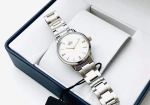 Mặt số trắng kết hợp cọc giờ đính pha lê tinh xảo, tôn lên vẻ thanh lịch và nữ tính.