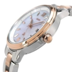 Dây và vỏ bằng thép không gỉ mạ vàng hồng kết hợp bạc (demi), tạo vẻ thanh lịch vượt thời gian.