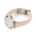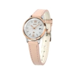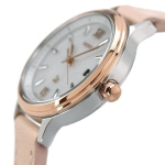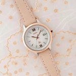 Mặt số trắng kết hợp kim và cọc số mạ vàng hồng, tạo vẻ tinh tế, nữ tính.