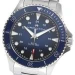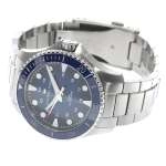 Mặt số màu xanh Blue, vành benzel gốm.Thiết kế 3 kim có dạ quang.