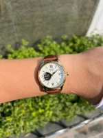 Dây đeo làm từ da cao cấp màu nâu, mang đến cảm giác thoải mái và sang trọng. Orient Star trang bị cho phần dây đeo này bộ khóa chống gãy, không chỉ đem lại sự thuận tiện trong quá trình sử dụng mà còn giúp tăng cường tuổi thọ cho phần dây này.