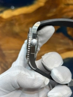 Chiếc đồng hồ sở hữu mặt số đen mạnh mẽ, kim và cọc số phủ dạ quang giúp quan sát rõ ràng trong môi trường thiếu sáng.