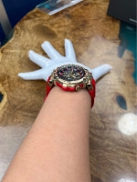 Những điểm nhấn màu đỏ rực trên vạch chỉ giờ, dây đeo và vỏ càng thể hiện rõ khí chất hiếm có và cao quý của Hổ Vàng.