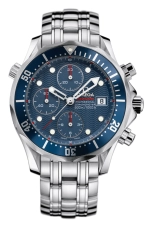 Chiếc OMEGA Seamaster Diver 300M này có mặt số màu xanh được trang trí họa tiết sóng. Có một cửa sổ ngày ở vị trí 3 giờ, ghi 30 phút và 12 giờ và mặt số giây nhỏ. Mặt số đặc biệt có thể nhìn thấy được qua tinh thể sapphire chống trầy xước. Viền xoay một chiều màu xanh lam được gắn trên vỏ thép không gỉ 41,5 mm với van thoát khí heli ở vị trí 10 giờ.