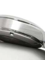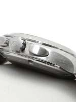 Mặt số màu xám được trang trí bằng hoa văn Teak Concept và cửa sổ ngày