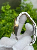 Mặt số tông vàng champagne nổi bật, họa tiết teak concept lấy cảm hứng từ sàn du thuyền, tạo chiều sâu và sự khác biệt.