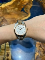 Chiếc Aqua Terra này nổi bật với vỏ và dây thép không gỉ kết hợp vàng 18K, mang lại vẻ ngoài đẳng cấp nhưng vẫn giữ được sự thanh lịch, không quá phô trương.