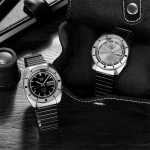 Đi kèm với dây đeo bằng da kiểu cổ điển, thể thao gợi lên bầu không khí của thời đại mà mẫu nguyên bản còn phổ biến, được đặt trong một chiếc hộp đặc biệt để tỏ lòng tôn kính với chiếc hộp đi kèm với mẫu ban đầu .