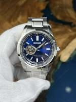 Mặt đáy lộ máy được Seiko hoàn thiện đẹp, cho phép nhìn rõ chuyển động cơ học tinh tế.
