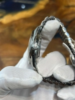 Vỏ thép không gỉ được hoàn thiện bóng – xước đan xen, mang lại vẻ ngoài cao cấp, phù hợp đeo công sở, sự kiện hoặc hằng ngày.