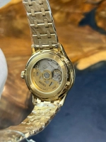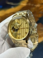 Toàn bộ khung vỏ và dây được mạ vàng gold cao cấp, tạo cảm giác sang trọng, phù hợp cho môi trường công sở hoặc những dịp trang trọng. Kích thước 41,8mm và độ dày 12,5mm cho cảm giác cân đối, ôm tay nam giới hiện đại.