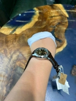 Dây đeo: Da bê màu nâu, khóa gập 3 càng