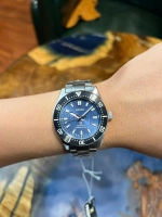 Bezel xoay đơn hướng phủ nhôm xanh đậm, hỗ trợ thợ lặn tính thời gian an toàn.